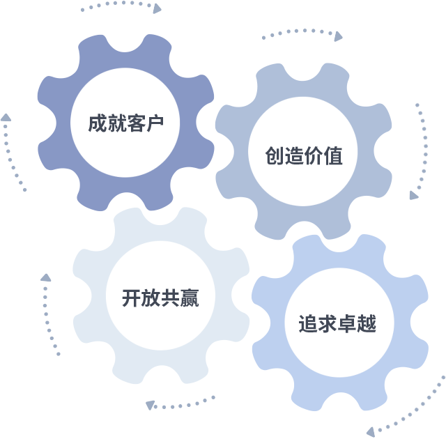 成就客户是一切决策的出发点,创造价值是衡量所有工作的标准,追求卓越是ONE游戏做事做人的态度,开放共赢是ONE游戏的格局也是最终的结果。价值观的齿轮环环相扣,推动着组织里的每个人不断向前。